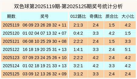 双色球第2025125期转头:03、09、12、13、26、32 + 09;