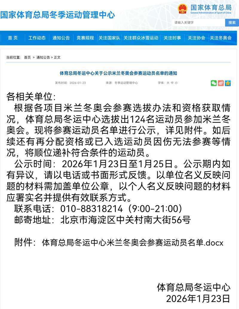 中国后生报客户端北京1月23日电(中青报·中青网记者慈鑫)国度体育总局冬季通晓管理中心今天发布了投入米兰冬奥会的中国通晓员名单公示告知。共有124名中国通晓员经遴荐赢得米兰冬奥会参赛经验,其中包括苏翊鸣、谷爱凌、徐梦桃、都广璞、范可新、隋爱静、韩聪、高亭宇、林孝埈、刘少昂等多位冬奥冠军。